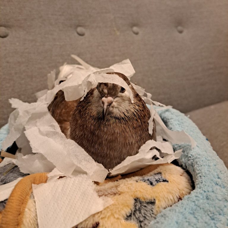 Die kleine Maus kam über eine Meldung zu mir. "Taubenküken im Neuraum". Mitten unter den Leuten, im Außenbereich des Clubs, saß eine verstörte Taubenmutter, in einem Eimer Streusalz, auf ihren firsch geschlüpften Babys.